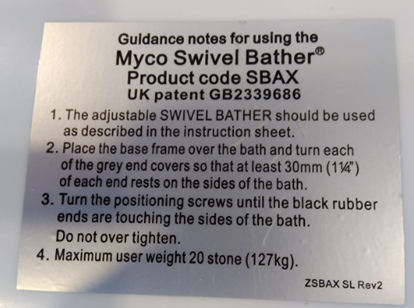 Fits over bath, seat swivels, and can be locked into position with lever at the side. Two parts Chair and Base.